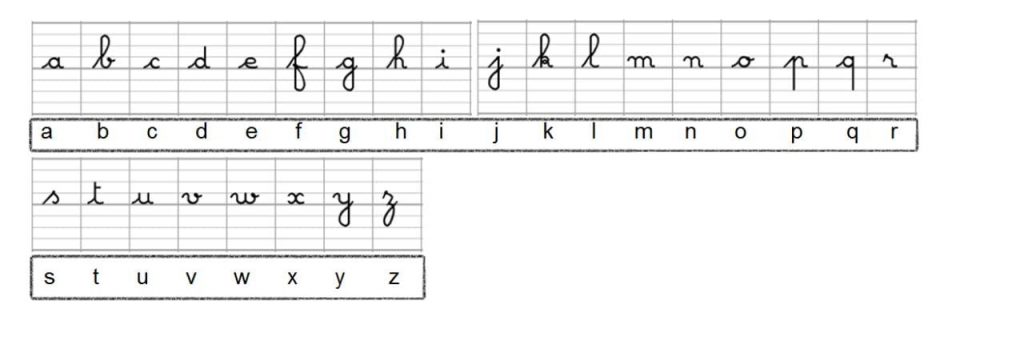 كما وضعنا بين أيديكم حروف الفرنساوي التي تكتب بخط اليد على الدفتر كما تعرف بأحروف كورسيف.